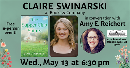 Join us with authors Claire Swinarski in conversation with Amy E. Reichert, for Swinarski’s new book, The Supper Club Saints, a dynamic, honest, and beautifully written novel about a young mother who returns to her small-town Wisconsin home after living in a cult-like "Mommune," and what happens with the other women in her family as they each navigate the constraints, complexities, and joys of modern motherhood. Book signing to follow.