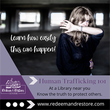 Come learn about this issue and what you can do to make a difference in lives of those affected. You will leave with understanding: how individuals get trapped, why they stay, why it’s so hard to leave and what Redeem and Restore Center doing to impact their lives.